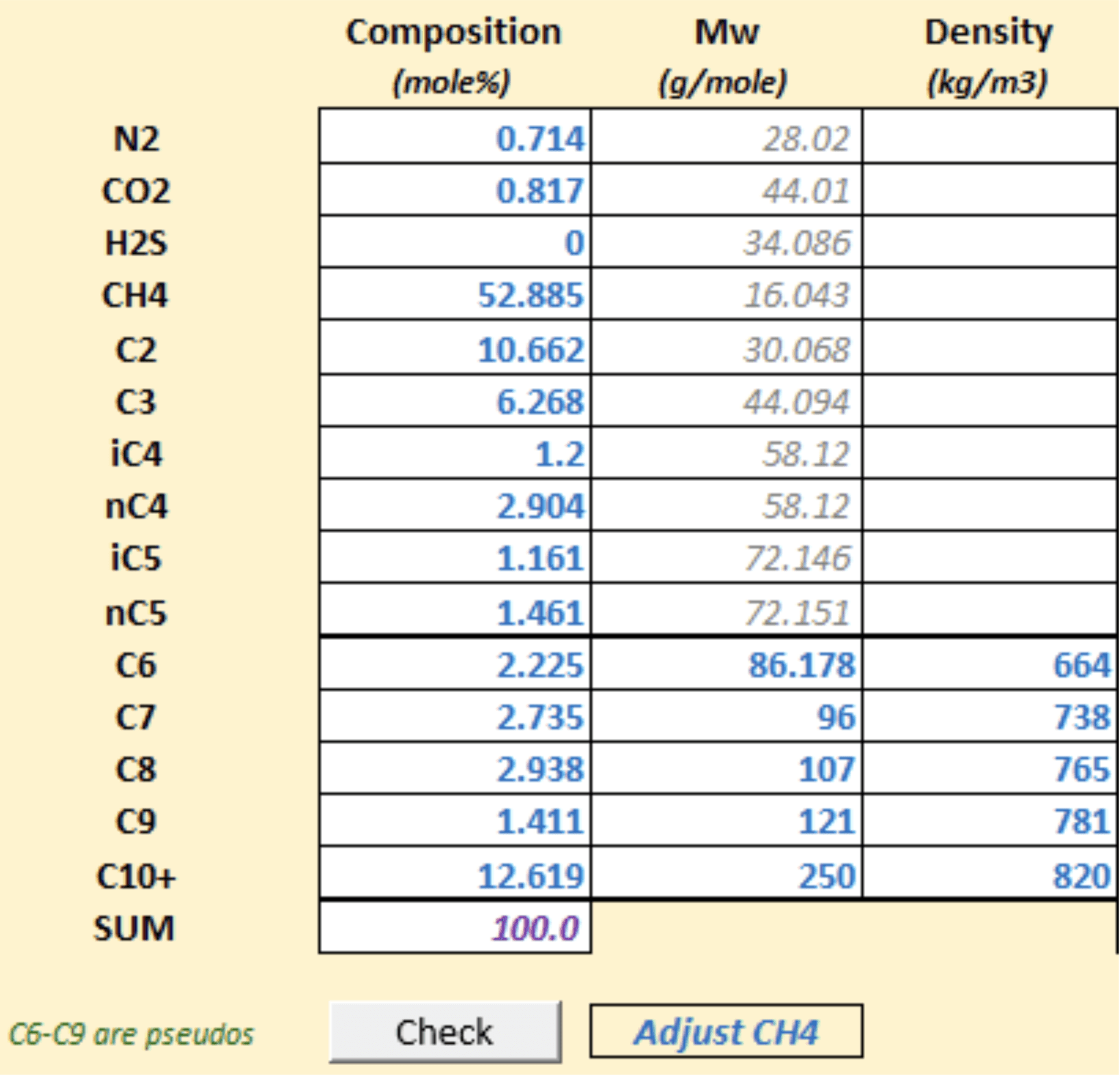 The user must specify composition of formation water and the wash water, reservoir fluid composition and lift gas composition (when relevant)