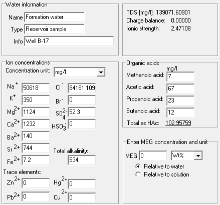 Enter the water analysis and water rate. You may add several different waters to simulate, for example, breakthrough of injected seawater or mixing of different waters.
