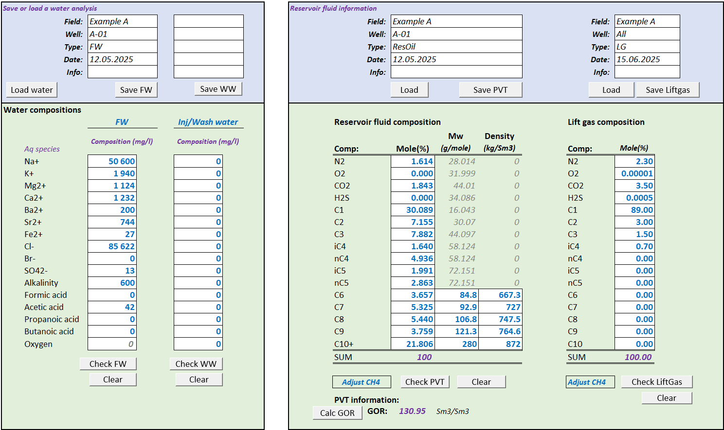 ScaleSimMaterial streamlines that work. It runs on the full ScaleSim thermodynamic model, but with a simplified Excel user interface where required input data has been stripped down to a minimum (see below), and the necessary water and PVT tuning routines are run automatically.